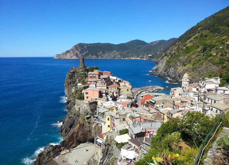 three of the five Cinque Terre towns: Riomaggiore, Manarola, Corniglia, Vernazza, Monterosso